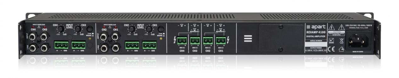 Profesionálny 4 kanálový zosilňovač s výstupným výkonom 4 x 100 W @ 4 Ohm. Použité sú 4 veľmi výkonné zosilňovače triedy D. Zosilňovač má 4 samostatné kanály. Tieto 4 kanály môžete zapojiť do môstika ako 2 stereo kanály alebo dokonca do systému 2.1. Systém 2.1 urobíte tak, že dva kanály použijete pre subwoofer a zvyšné dva kanály na stredovýškové reproduktory.