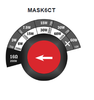 Pri verzii MASK6CT je prítomný prepínač, ktorý umožňuje použiť tento reproduktor ako 16 Ohmový alebo 100V reproduktor. Ak používate 100V, môžete si vybrať z výkonnostných odbočiek transformátora: 6W, 15W, 30W a 60W.