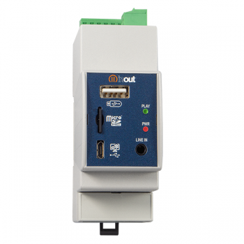 Zariadenie má integrovaný zosilňovač triedy D s výkonom 15 W, vstup na microSD kartu, USB ale aj RS485 ovládanie, I/O konfiguráciu, časový harmonogram prehrávania skladieb, 8 programovateľných logických vstupov, ktoré sa spúšťajú od relátka, pohybového senzoru, vypínača a pod.