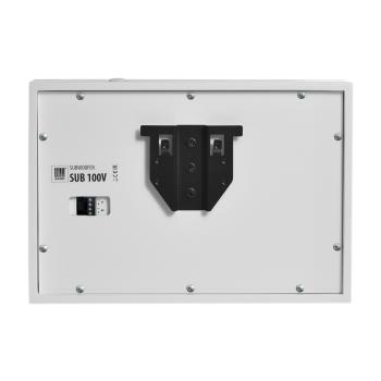 Pasívny nízkotónový reproduktor (subwoofer) 60 / 30 / 15 / 7,5 W / 100 V, 50 Hz - 300 Hz, 350x240x105 mm. Subwoofer má 6“ nízkotónový menič, crossover. Montáž na stenu alebo strop. Použitím SUB 100V značne rozšírite možnosti Vášho systému ozvučenia.