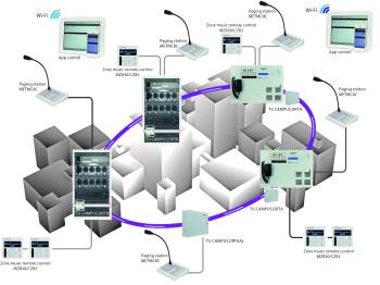 Vyhláška o požiarnej prevencii stanovuje metódy návrhu požiarnej bezpečnosti, čím zosúlaďuje predpisy s medzinárodnými zásadami požiarnej prevencie platnými pre nové alebo existujúce stavby alebo činnosti. Nová funkcionalita CAMPUS v systémoch VAS je ideálna v komplexoch pozostávajúcich z viacerých budov, ako sú: nákupné centrá alebo univerzity, školy, letiská, kongresové centrá, múzeá, knižnice, metro alebo nemocničné zariadenia. V konfigurácii CAMPUS sú ovládacie panely VAS umiestnené v rôznych budovách navzájom prepojené vďaka kruhovému prepojeniu, ktoré je možné realizovať cez LAN alebo optickú sieť. Udržiavaním kontroly z centrálnej mikrofónovej stanice je možné zároveň zvýšiť úroveň bezpečnosti pomocou redundantného prepojenia. Prerušenie prepojenia v ktoromkoľvek bode kruhu neovplyvní prevádzku systému vďaka monitorovaniu v reálnom čase a redundancii prepojenia.