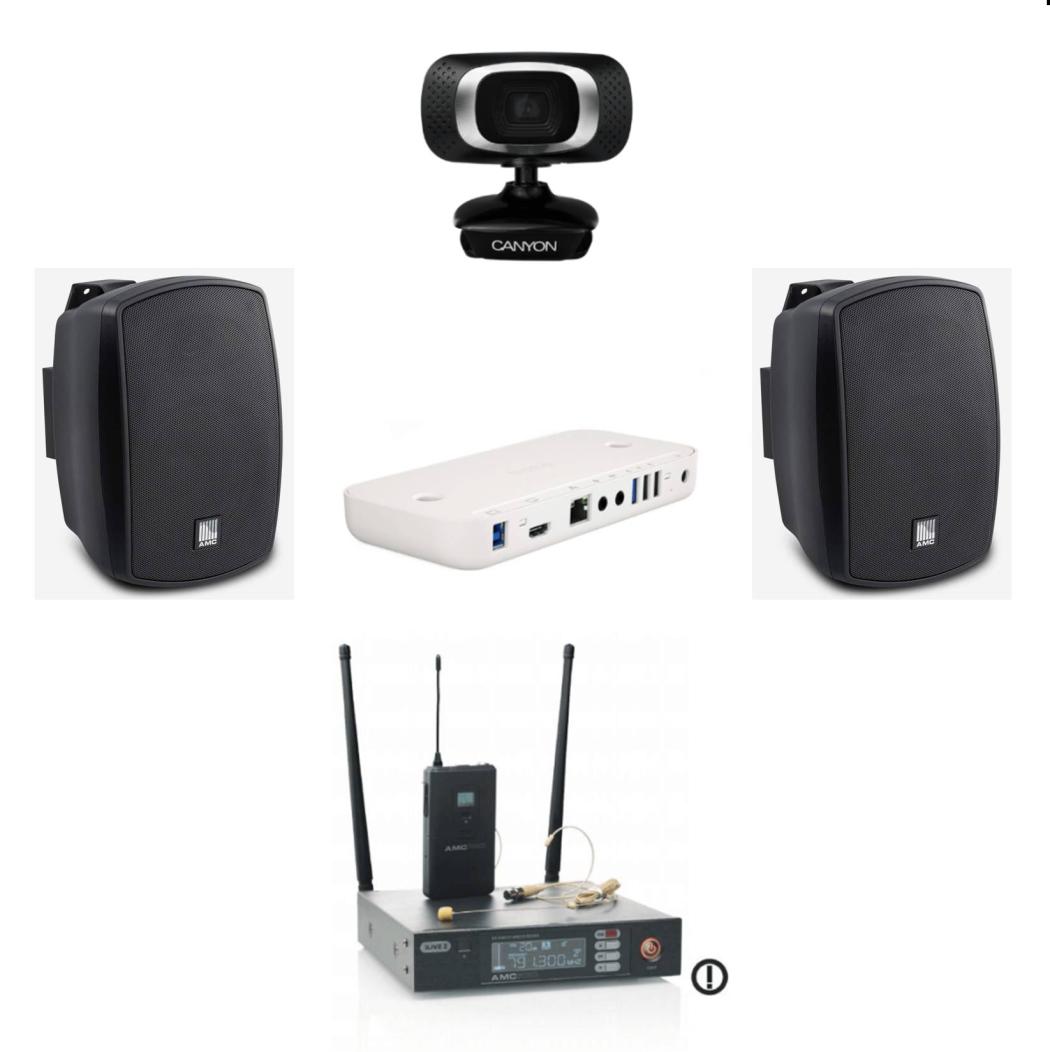 Súčasťou setu je kamera Canyon C3, ale môžete si dokúpiť aj kvalitnejšiu 4K kameru Biamp VIDI 100 . Jednu kameru môžete nasmerovať na miestnosť a druhú na prednášaciu tabuľu. Môžeme počas prednášky prepínať obraz na účastníkov a na tabuľu.